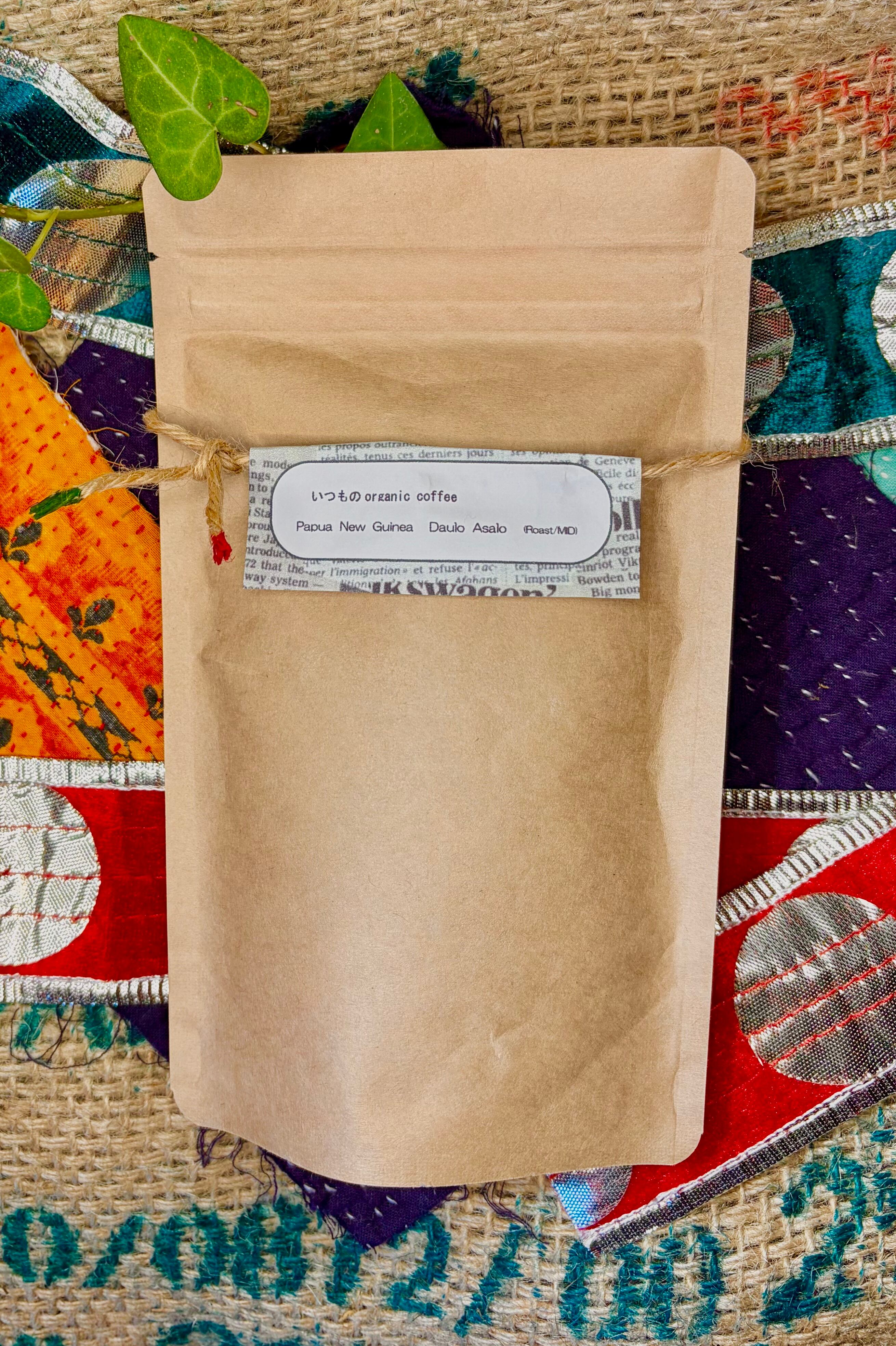 【パプアニューギニア ダウロ・アサロ(マッドマン・コーヒー)(中深煎り)/無農薬・化学肥料不使用/ いつものコーヒーAsia④ 100g】柑橘系の酸味とや甘味、そしてしっかりとしたボディ。微かにナッツやスパイスのニュアンスも。肥沃な土地で、伝説の勇者「マッドマン」の血を引くオネトレフォ族の皆さんに無農薬・化学肥料不使用で育てられた豆。力強さを感じるパプアニューギニア産の特別なコーヒー、ダウロ・アサロ・マッドマンコーヒーをお楽しみください!